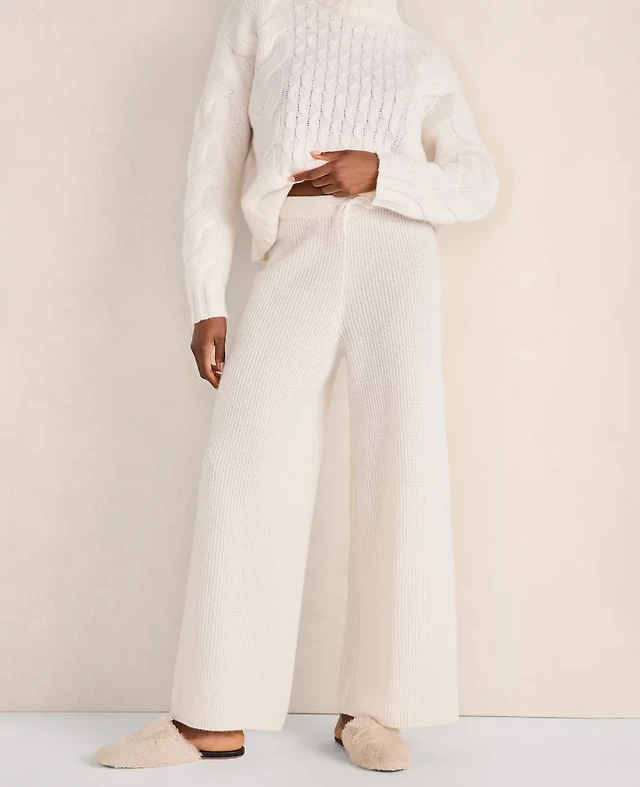 Ann Taylor Haven Well Within Cashmere Rib Knit Wide Leg Pants Fresh Cream Women's