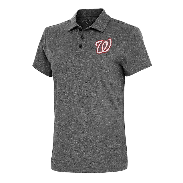 Women's Antigua Heather Black Washington Nationals Motivated Polo