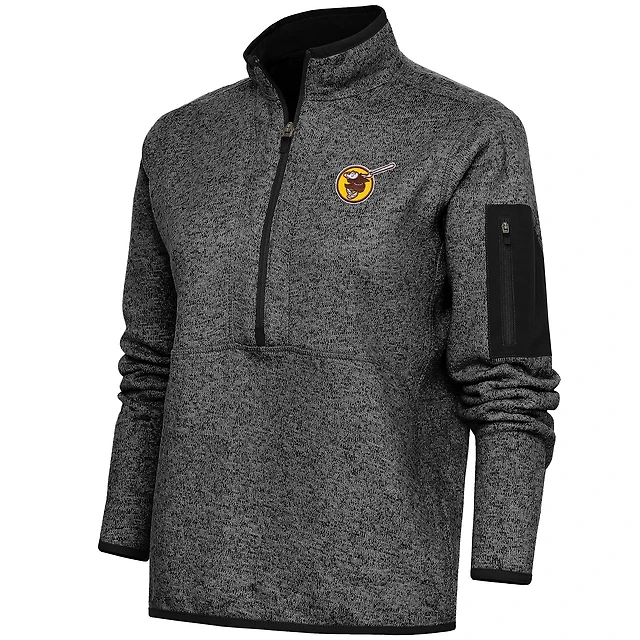 Women's Antigua Heather Black San Diego Padres Cooperstown Logo Fortune Quarter-Zip Pullover Jacket