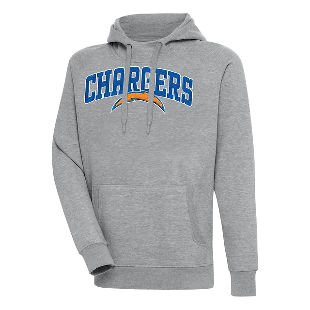 Men's Antigua Heather Gray Los Angeles Chargers Victory Pullover Hoodie
