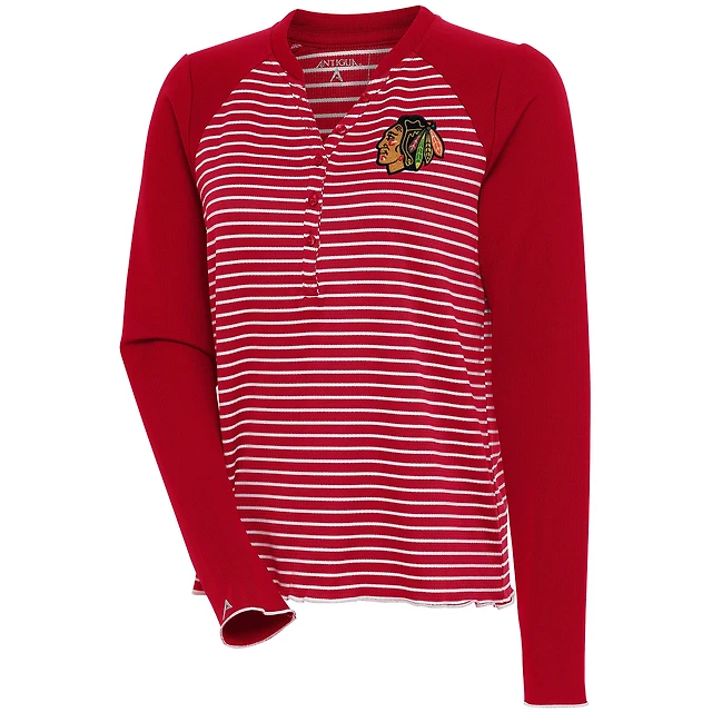 Women's Antigua Red Chicago Blackhawks Maverick Henley Long Sleeve T-Shirt