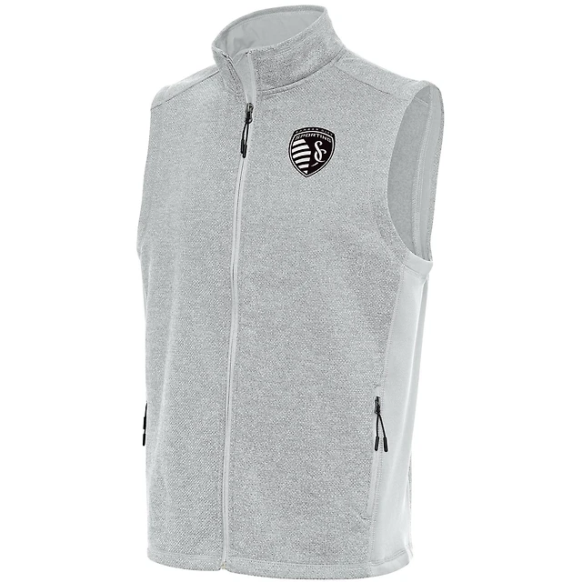 Men's Antigua Gray Sporting Kansas City Brushed Metallic Course Full-Zip Vest