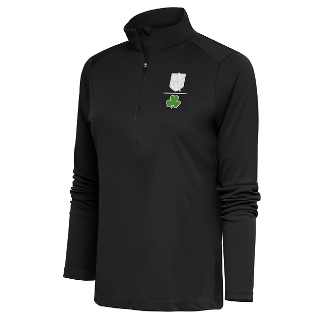Men's Antigua Kelly Green Boston Celtics Shamrock Tribute Quarter-Zip Pullover Top