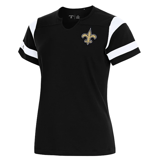 Women's Antigua Black New Orleans Saints Encounter Short Sleeve Notch Neck Top