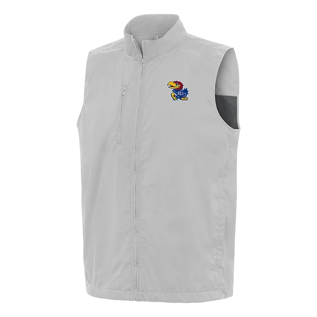 Men's Antigua Gray Kansas Jayhawks Brisk Full-Zip Vest