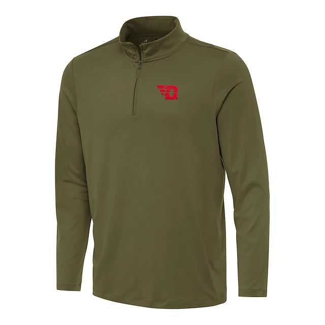 Men's Antigua Olive Dayton Flyers Reprocess Quarter-Zip Top