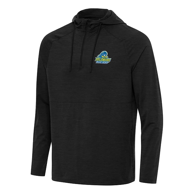 Men's Antigua Heather Black Delaware Fightin' Blue Hens Spikes Raglan Quarter-Zip Hoodie