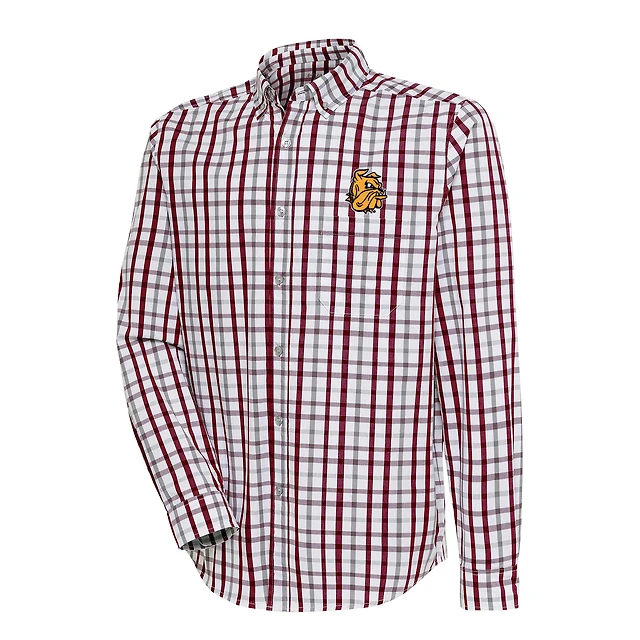 Men's Antigua Maroon/Gray Minnesota Duluth Bulldogs Tending 2 Tri-Blend Long Sleeve Full-Button Shirt