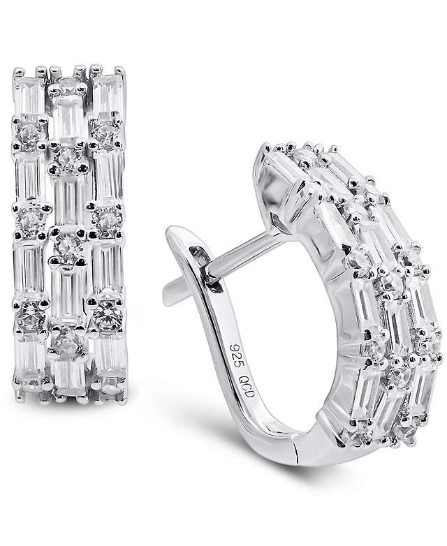 Arabella Cubic Zirconia Baguette Hoop Earrings in Sterling Silver