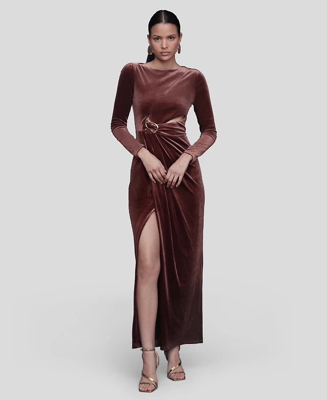 Avec Les Filles Women's Asymmetric Drape Long Sleeves Maxi Dress