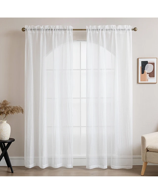 Awesome Home Crinkle Textured Semi-Sheer Rod Pocket Curtains Pair