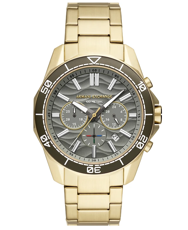 A|X Armani Exchange Men's Chronograph Gold-Tone Stainless Steel Watch 44mm