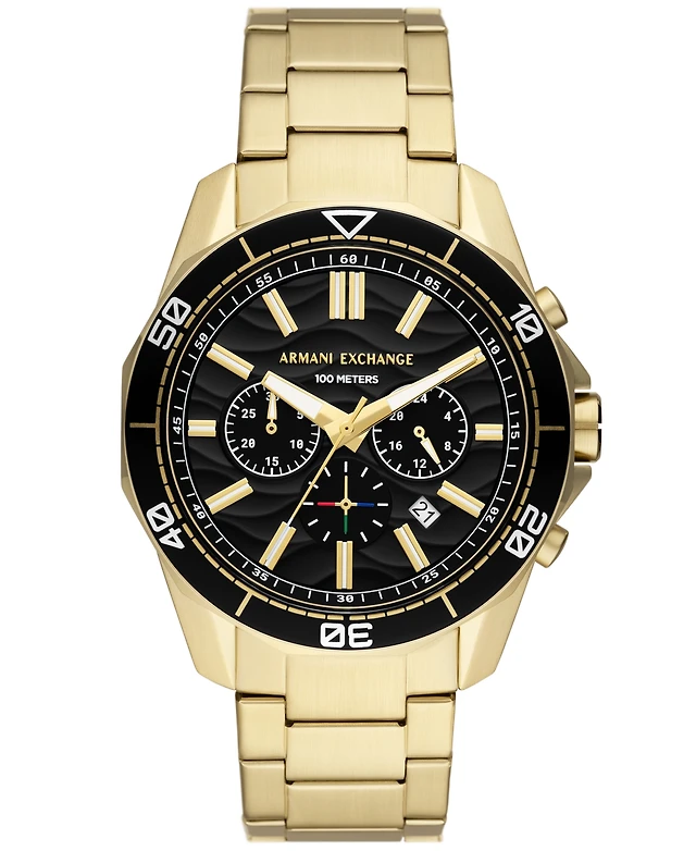 A|X Armani Exchange Men's Chronograph Gold-Tone Stainless Steel Bracelet Watch 44mm