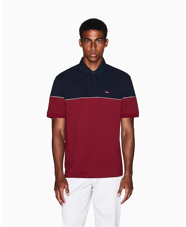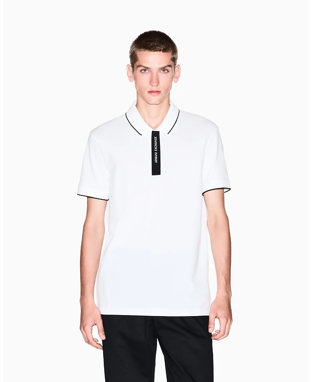 A|X Armani Exchange Men's Short Sleeve Color Block Pique Zip with Collar Tipping Polo Shirt