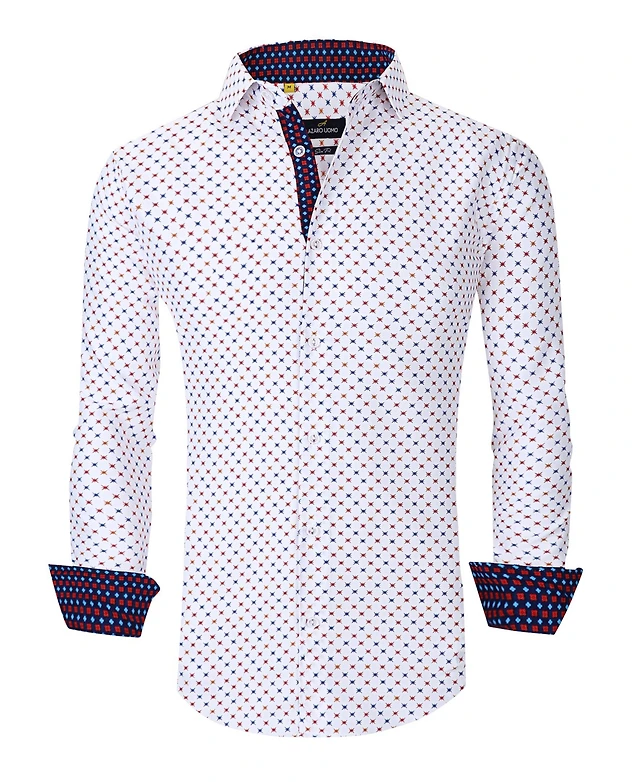 Men's Business Geometric Long Sleeve Button Down Shirt