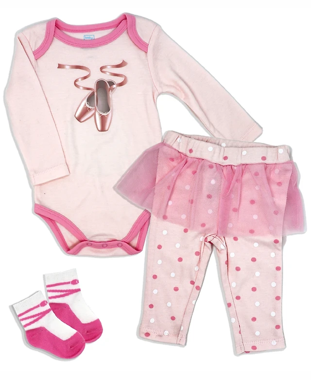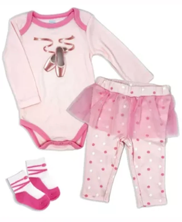 Baby Girls 3 Piece Ballet Bodysuit, Pants and Socks Set