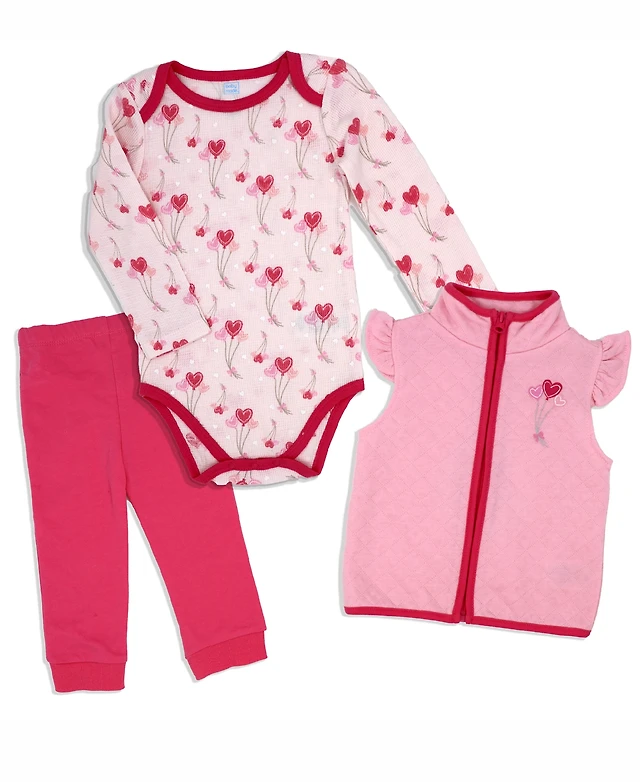 Baby Mode Baby Girls Hearts Bodysuit, Pants and Vest, 3 Piece Set