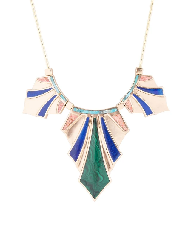 Barse Abstract Art Deco Genuine Multi Stone Golden Pendant Necklace