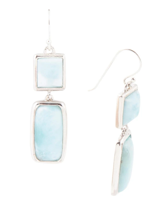 Barse Drop Genuine Blue Larimar Rectangle Earrings