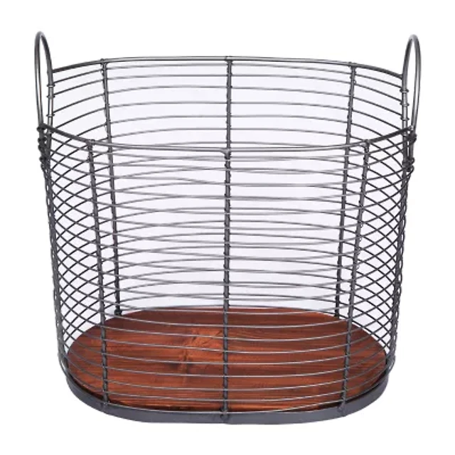 Baum Black Wire Basket with Wood Bottom