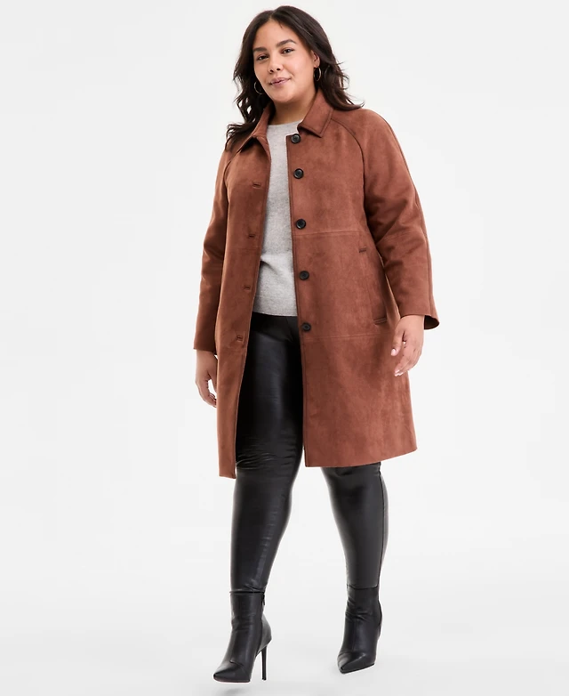 Bcbgmaxazria Plus Size Button-Front Faux-Suede Jacket