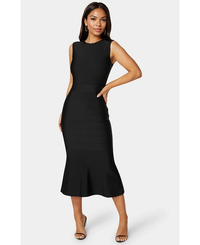 Bebe Women's Fringe Inset Bandage Midi Dress