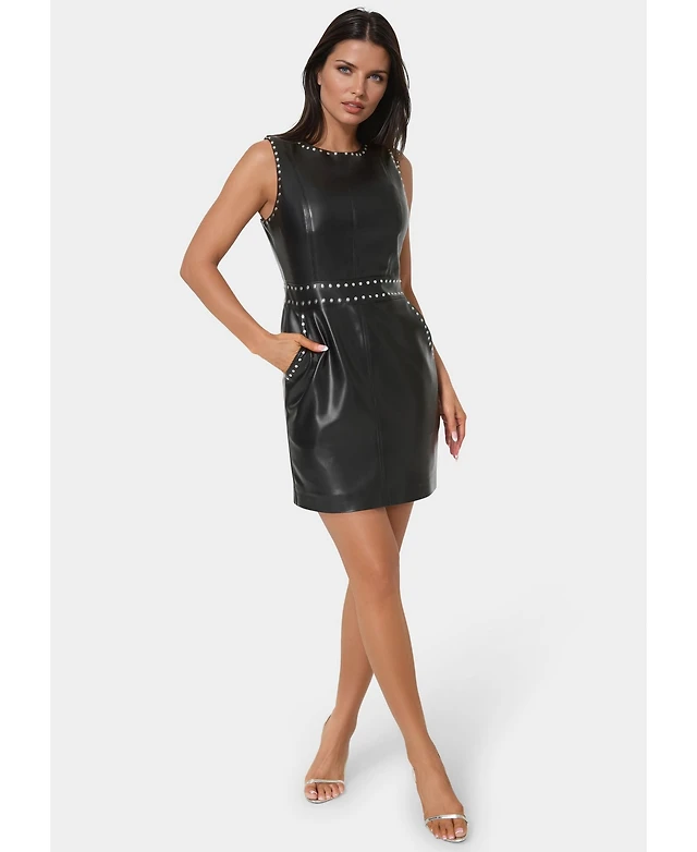 Bebe Women's Faux Leather Lace Inset Flare Dress