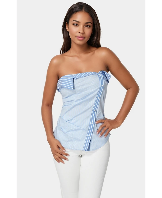 Bebe Women's Strapless Lace Drape Detail Mini Dress