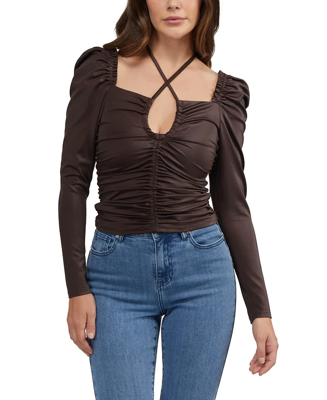 Bebe Women's Puff Sleeve Coated Ruched Top