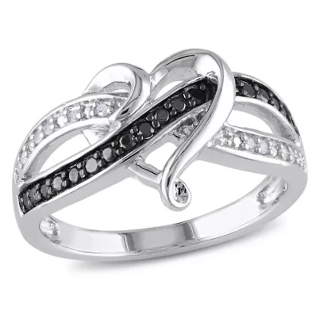 1 ct. t.w. Black and White Diamond Anniversary Ring 10K Gold with Rhodium Plated