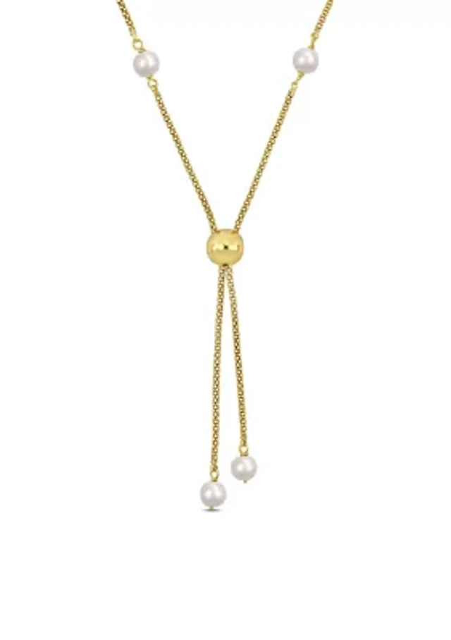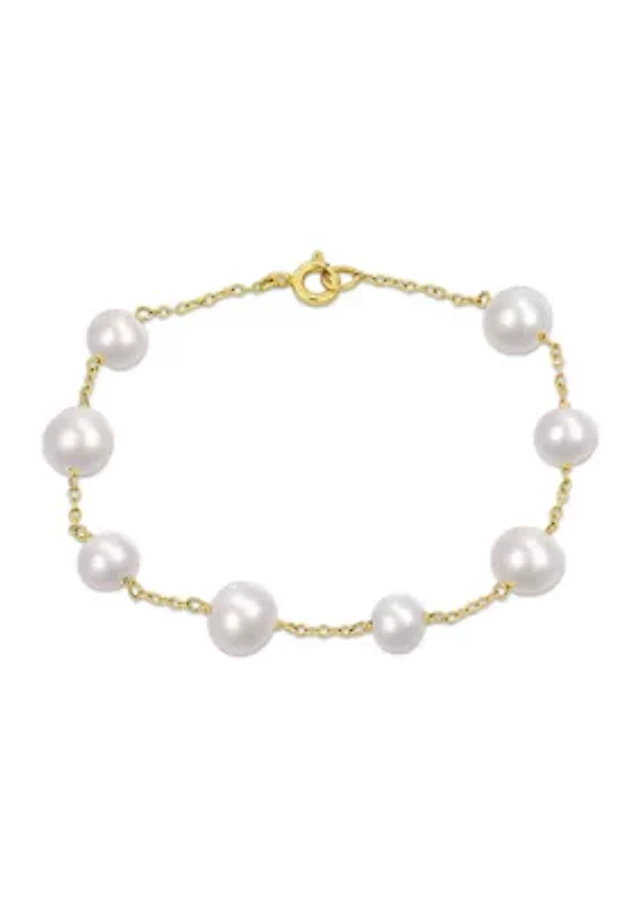 6.5-8.5 MM Cultured Freshwater Pearl Station Bracelet in Yellow Plated Sterling Silver