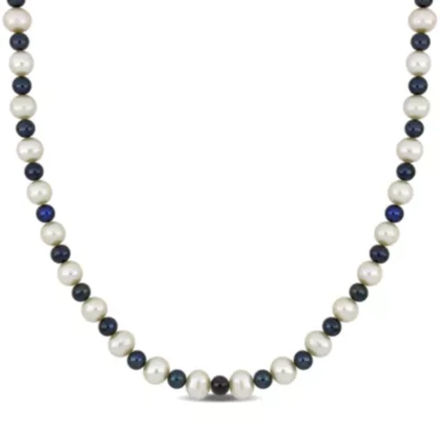Freshwater Cultured Pearl and Black Freshwater Cultured Pearl Necklace with Sterling Silver Clasp