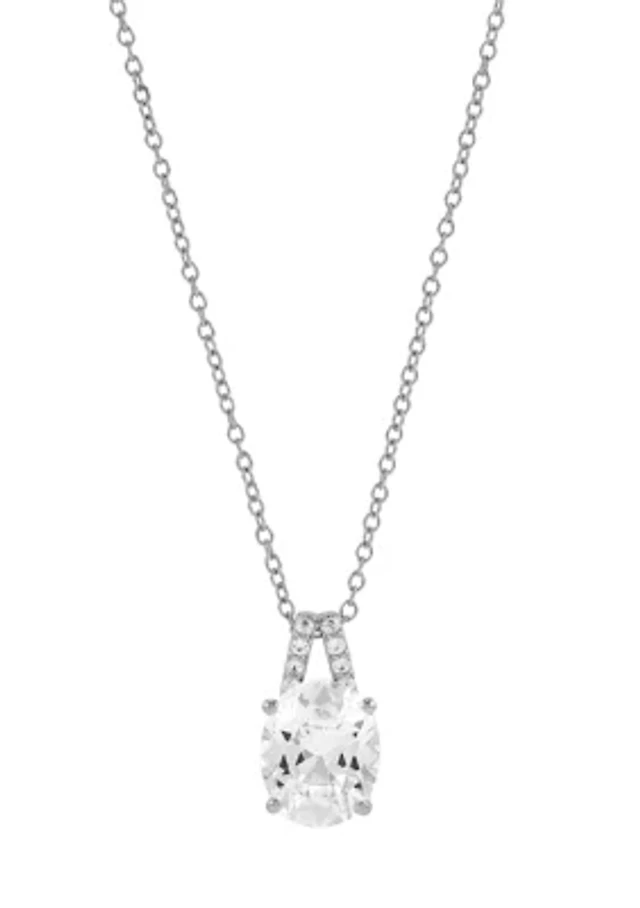Lab Grown White Sapphire Pendant with 18" Cable Chain and Stud Earrings Set in Sterling Silver