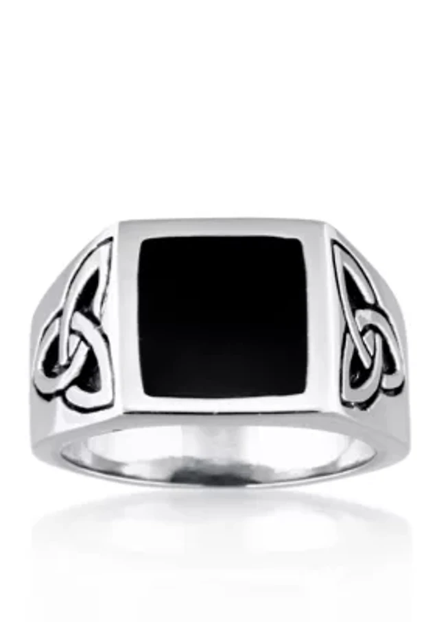 Men's Stainless Steel and Black Resin Celtic Knot Ring