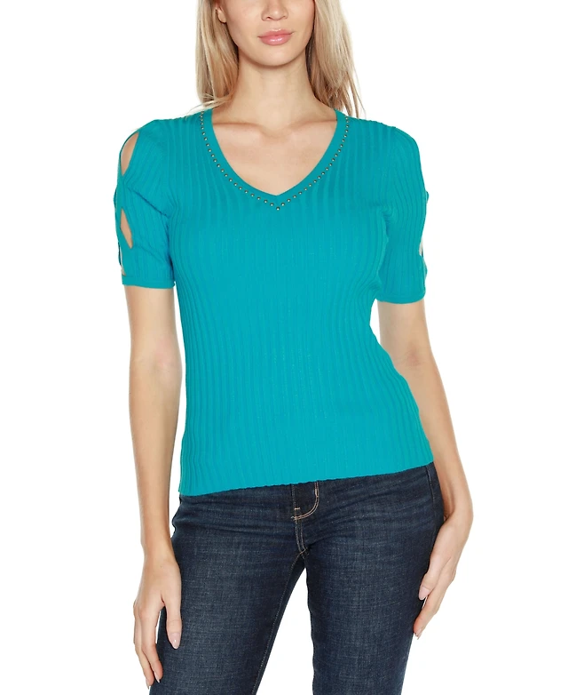 Belldini Women's Slit-Sleeve Keyhole Knit Top