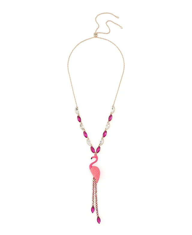 Betsey Johnson Faux Stone Backyard Flamingo Adjustable Y-Necklace