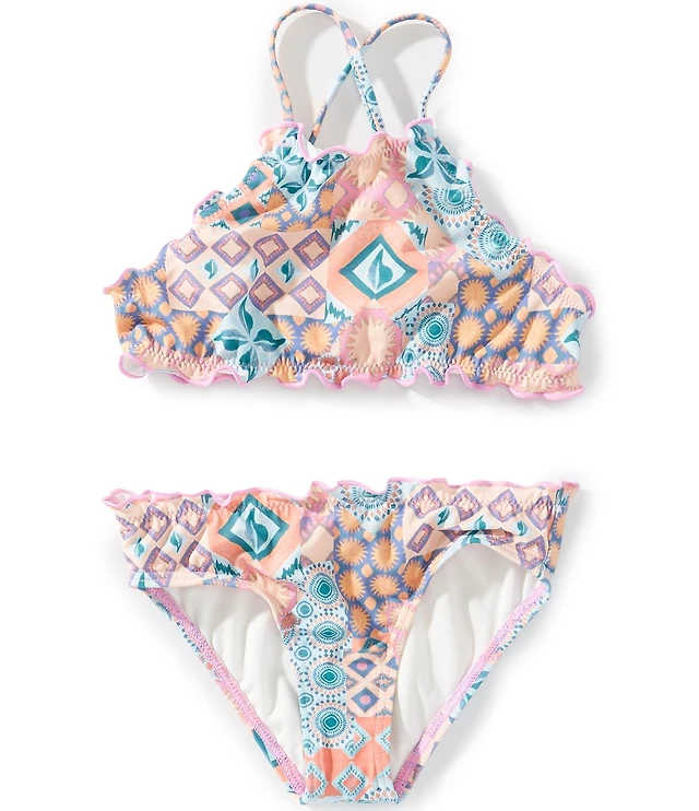 Billabong Big Girls Sleeveless Bandana Patchwork Halterkini Top & Matching Hipster Bottom Two-Piece Swimsuit