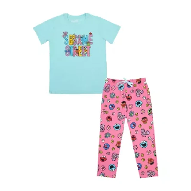 Womens Sesame Street Plush Crew Neck Short Sleeve 2-pc. Pajama Sets