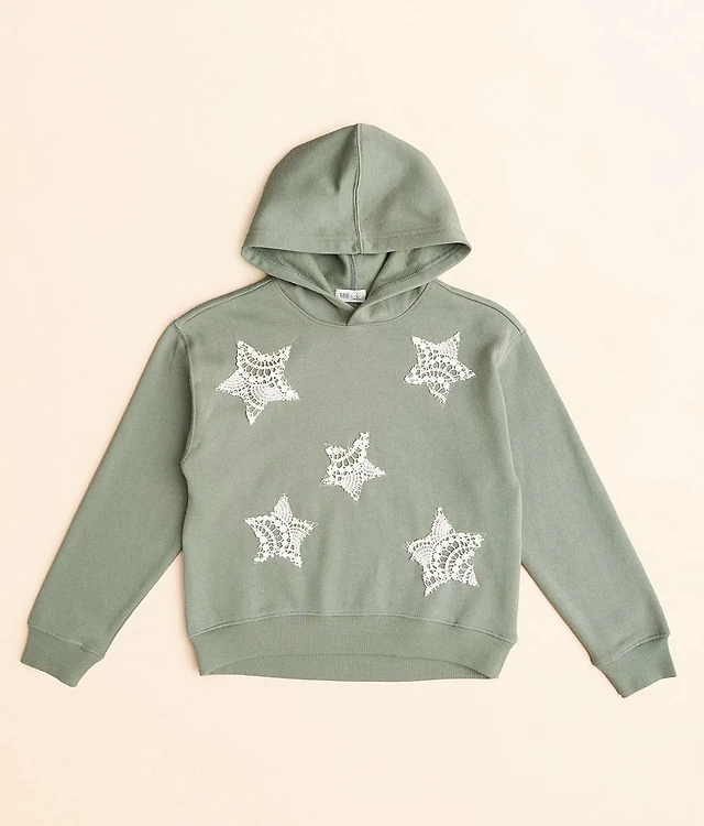 Girls - Star Crochet Applique Hooded Sweatshirt
