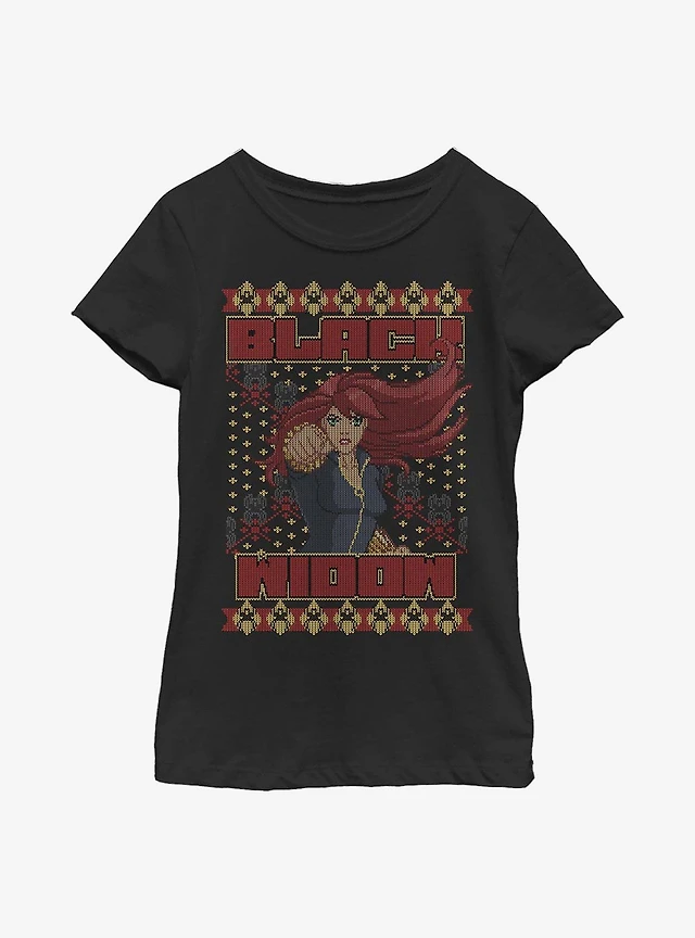 Marvel Black Widow Christmas Holiday Pattern Youth Girls T-Shirt