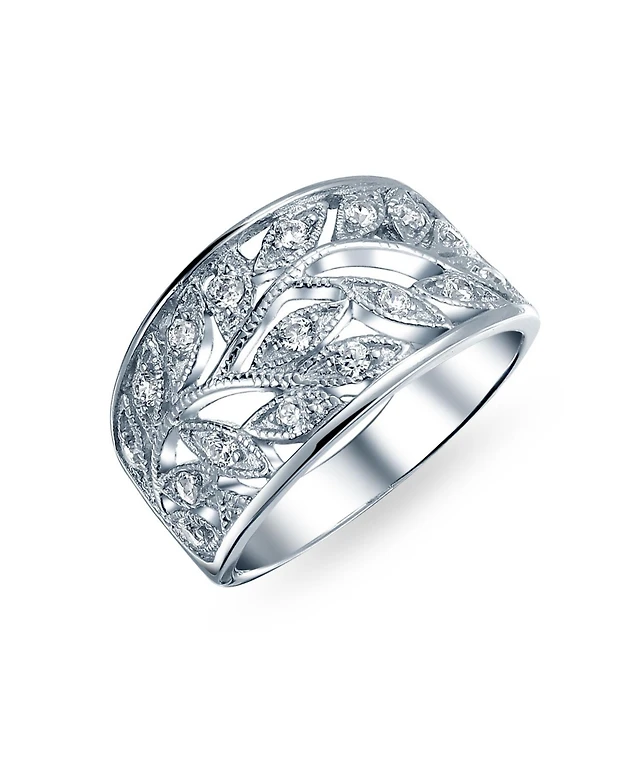 Bling Jewelry Victorian Style Filigree Flower Cz Accent Wide Huggie Hoop Earrings Cubic Zirconia Silver Rose Gold Plated