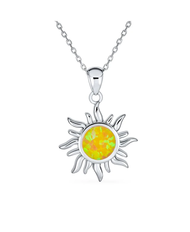 Bling Jewelry Round Blue Created Opal Inlay Spiral Maze Wind Pendant Necklace .925 Sterling Silver