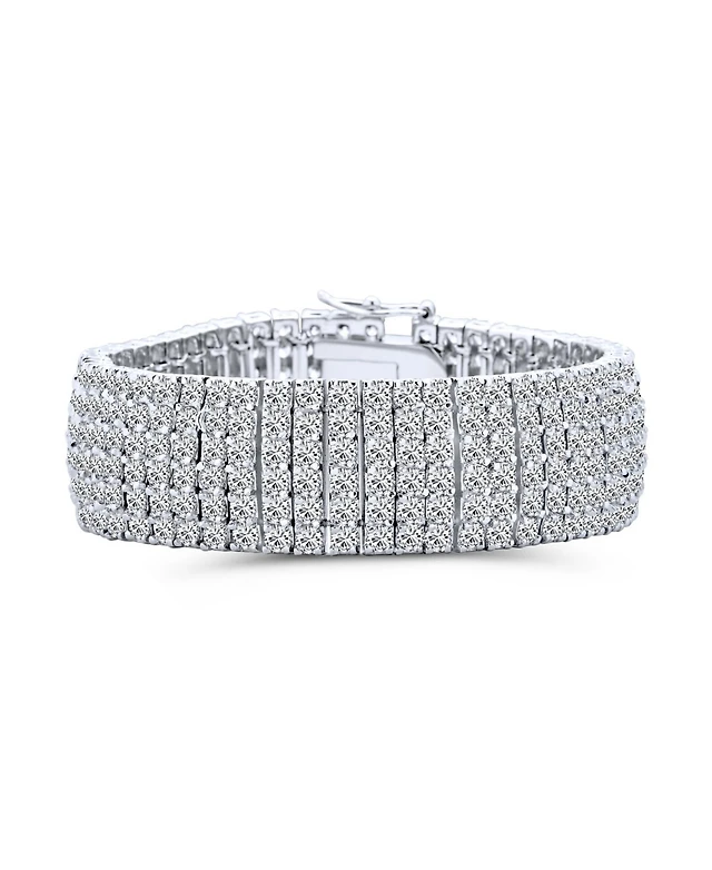 Bling Jewelry Elegant Special Occasion Jewelry Multi Row Cluster Design Cubic Zirconia Cz Wide Statement Bracelet Occasions Silver Plated