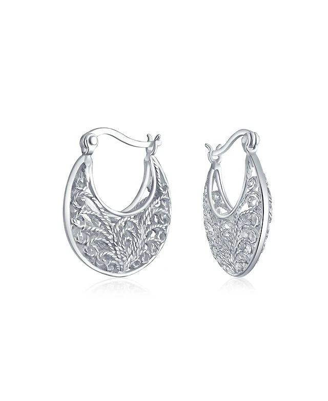 Bling Jewelry Carved Etched Puffed Pear Shaped Rain Drop Teardrop Earrings Fishhook Sterling Silver