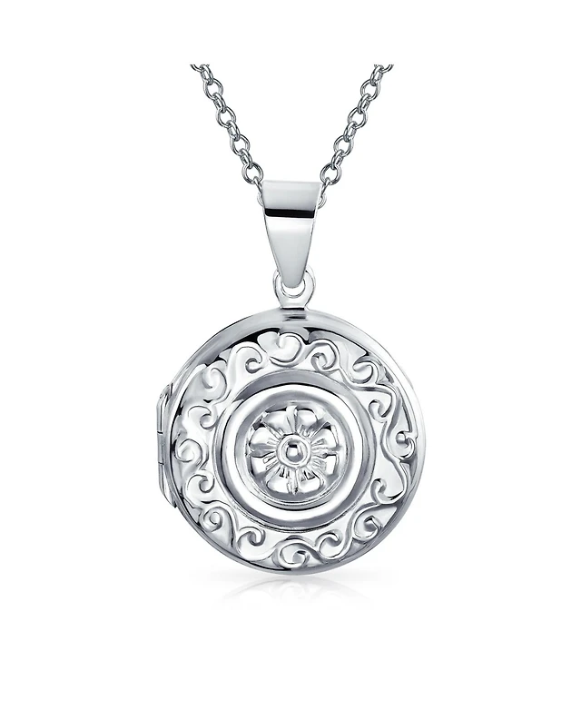 Bling Jewelry Large Simple Dome Round Circle Photo Lockets That Hold Pictures Silver Locket Necklace Pendant