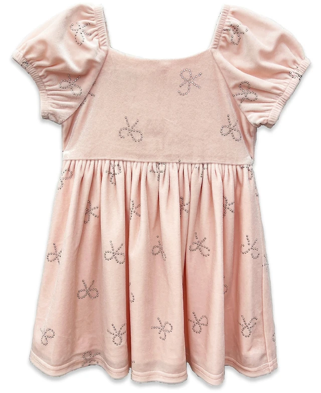 Blueberi Boulevard Baby Girls Puff Sleeve Stretch Velvet Bow Dress