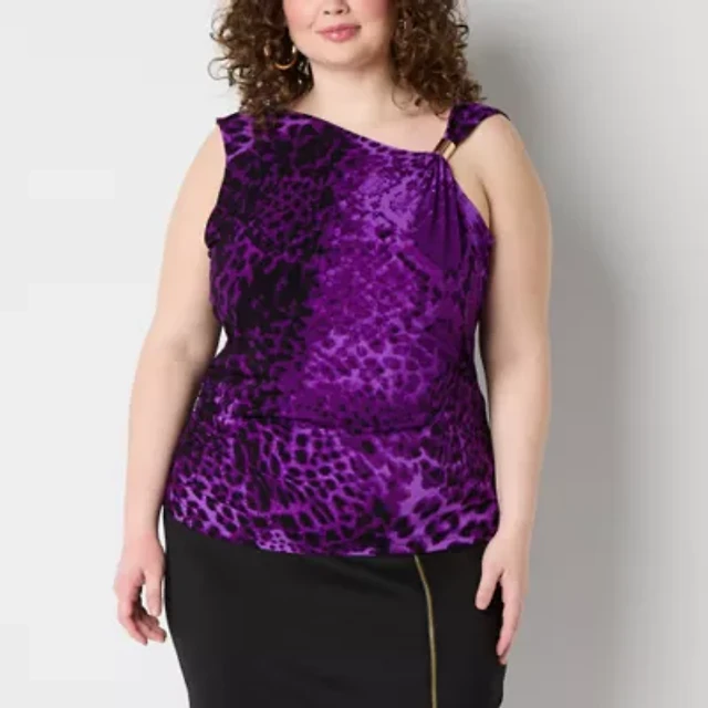 Bold Elements Womens Plus Asymmetrical Neck Sleeveless Blouse