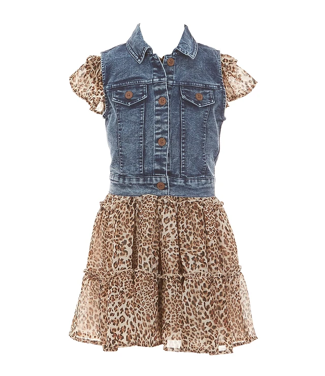 Toddler Girls Denim Vest with Patchwork Print Dress