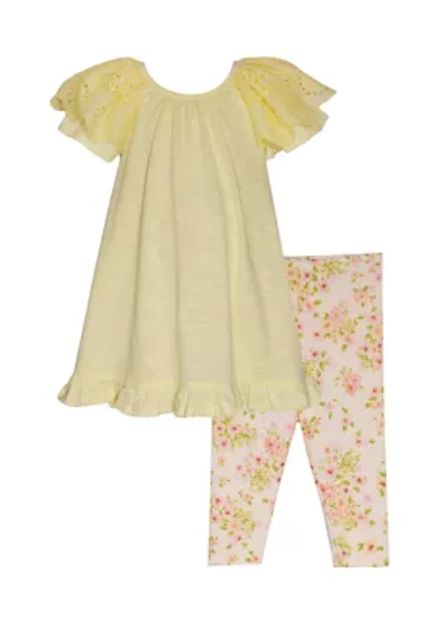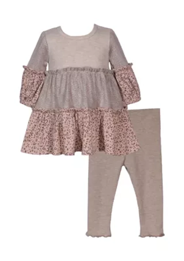 Baby Girls Smocked Printed Chiffon Top and Solid Leggings Set