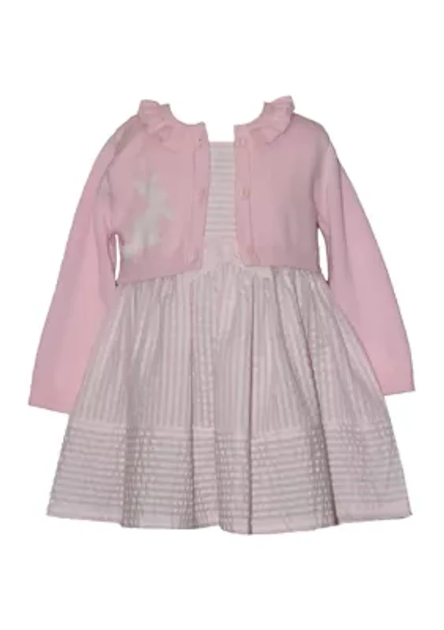 Toddler Girls Stripe Flamingo Embroidered Dress